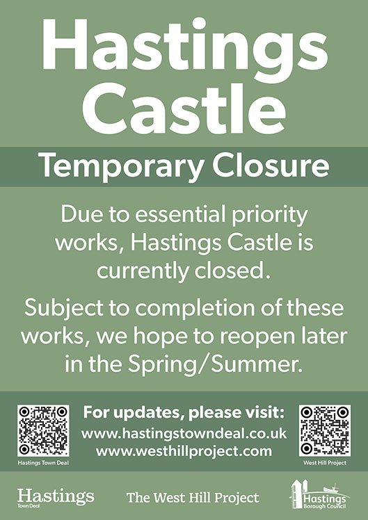 The timing will depend on the completion of the priority works and verification that the site is safe to welcome visitors again. Reopening will follow as part of the next phase of the Hastings Castle and West Hill project.