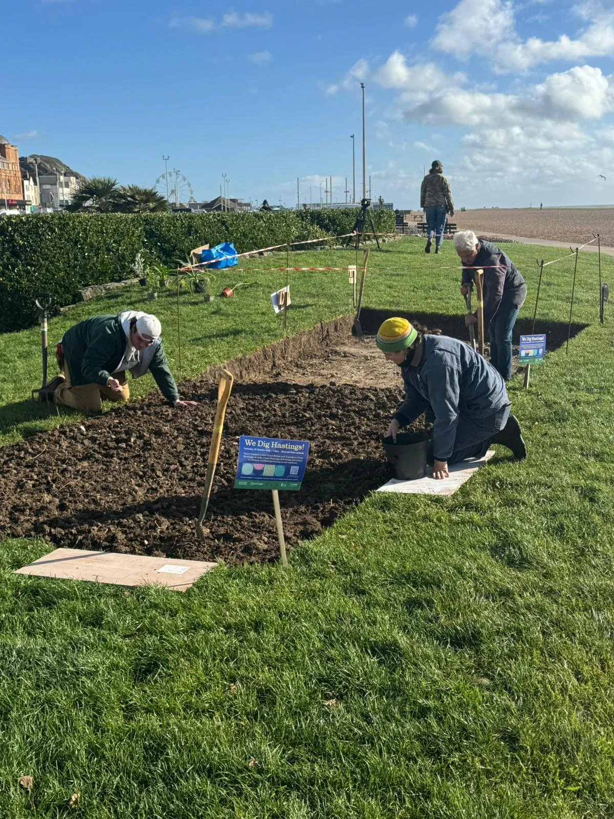 In October 2025, Hastings residents and community groups came together on the seafront for We Dig Hastings, a pilot planting weekend hosted by Transition Town Hastings in collaboration with experts from Great Dixter.